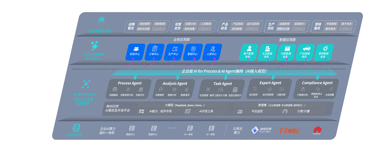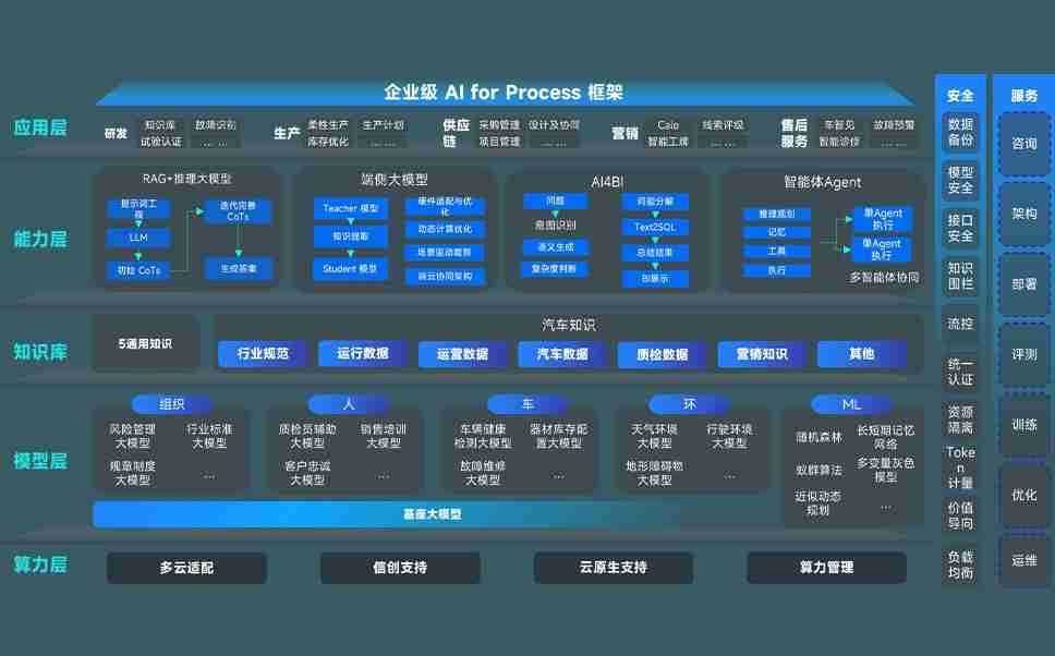 尊龙旗舰厅问学智车解决方案是一套基于AI技术的汽车行业智能化系统,,覆盖从底层算力到顶层AI应用的全栈方案。。。。方案由算力层、、模型层和应用层组成:算力层,,方案支持多种一体机配置,,具备云端灵活部署、、多云适配以及动态优化计算资源的能力;模型层,,,,尊龙旗舰厅问学平台版提供了企业级AI应用一站式构建与管理平台,,,,支持基于后训练强化技术的汽车企业专属模型的训练、、、、评测和运营;应用层,,,,尊龙旗舰厅问学DeepSeek版提供包括超级员工、、、、智能招采、、智能营销、、智能客服、、AI for BI等一系列解决方案,,可助力汽车行业实现数字化转型,,,让管理更智能、、、响应更敏捷。。。。